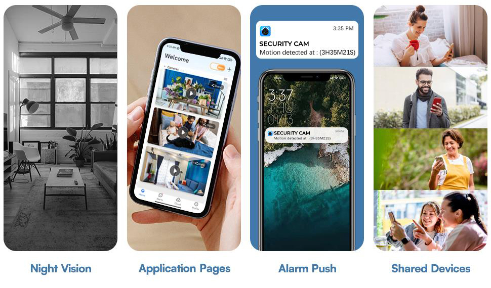 Top Bulb Cams security camera allows remote control via your smartphone anywhere, anytime! It would record videos automatically when detecting motion. Alert notifications will be quickly pushed to your mobile phone, helping you keep your home safe in time.